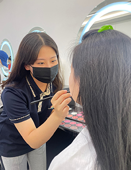 모델을 정면에서 확인하며 메이크업을 완성해주셔야합니다! 서있을때, 옆에서, 앉아서 메이크업을 할 때 메이크업의 각도가 다 다르게 나오기 때문에 멀리서도 한번씩 확인 해 주시면 더 메이크업의 완성도가 높게, 예쁘게 완성 할 수 있습니다~!!!
